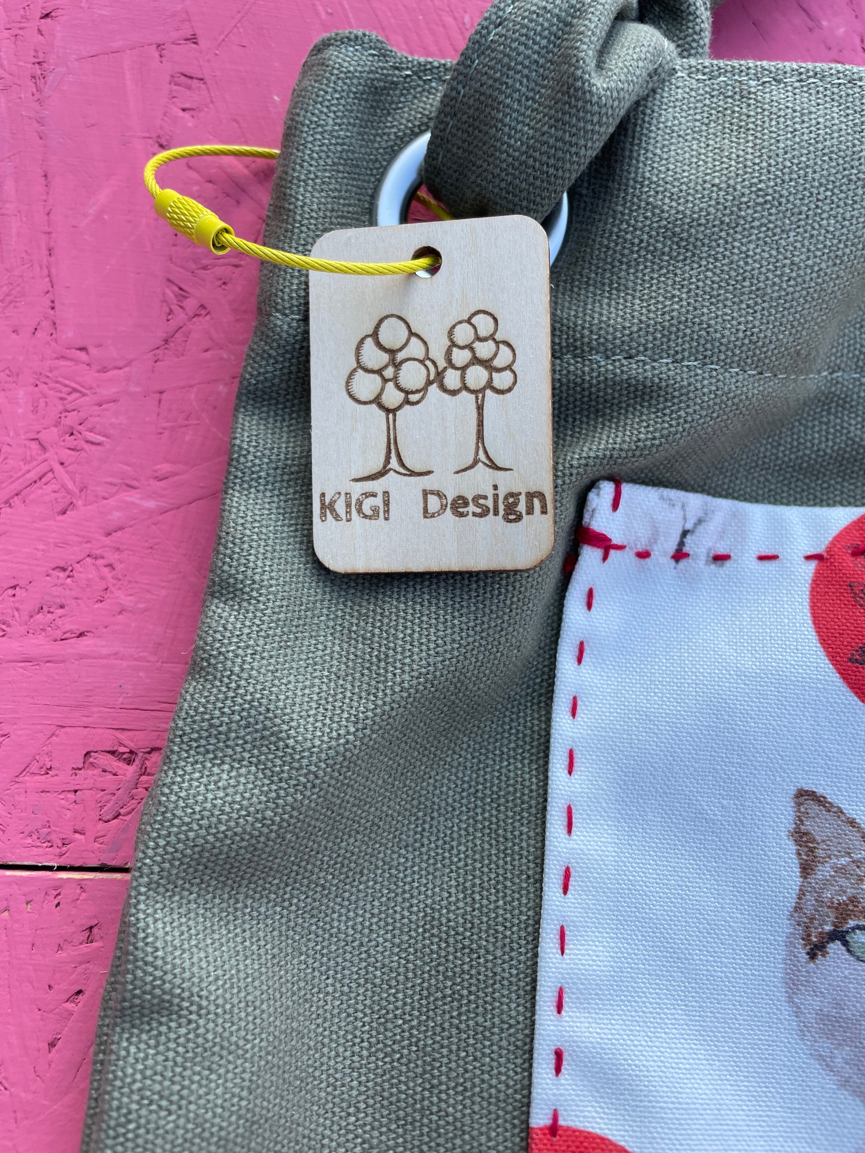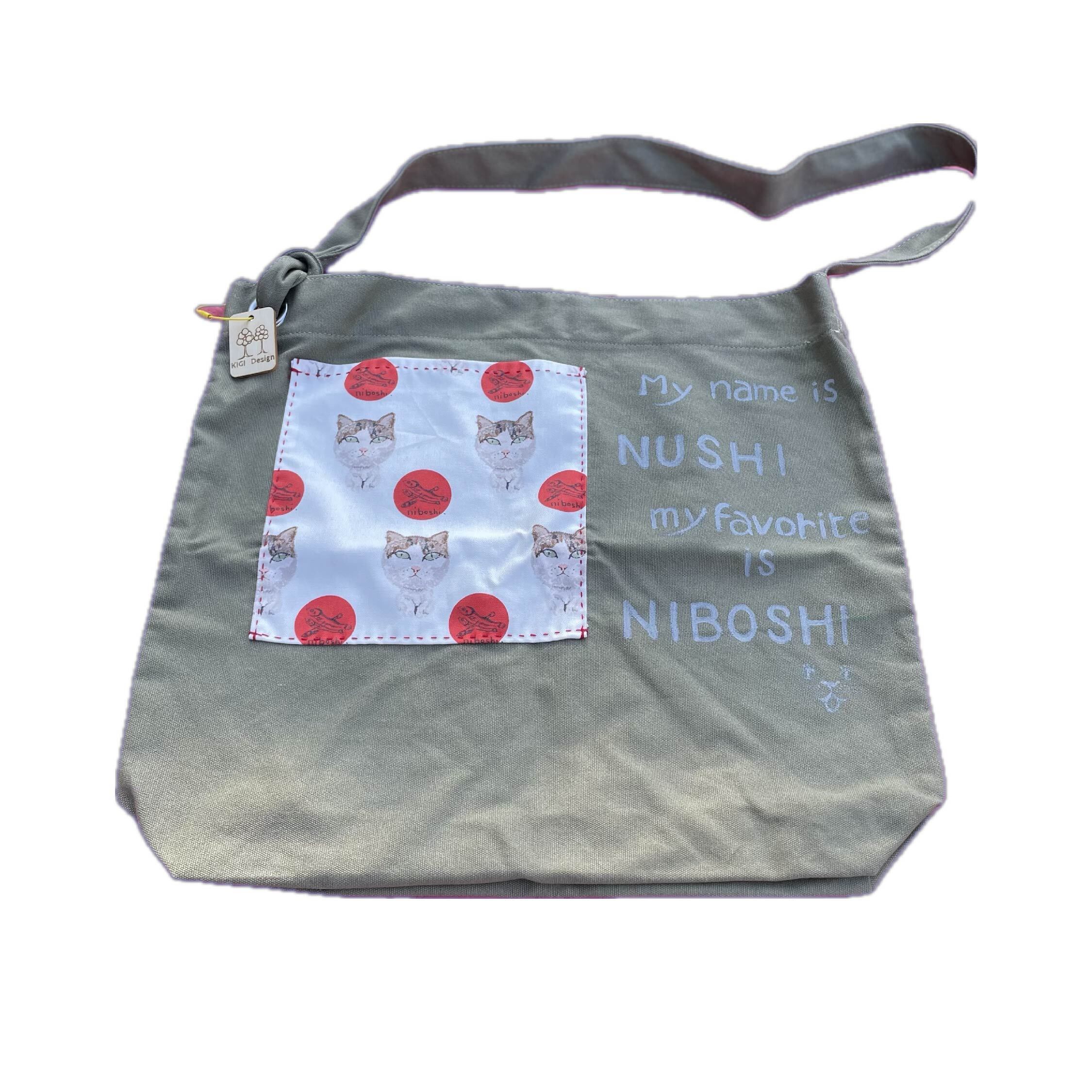 KIGIイラストポケットの付いた 大きなショルダーバッグ